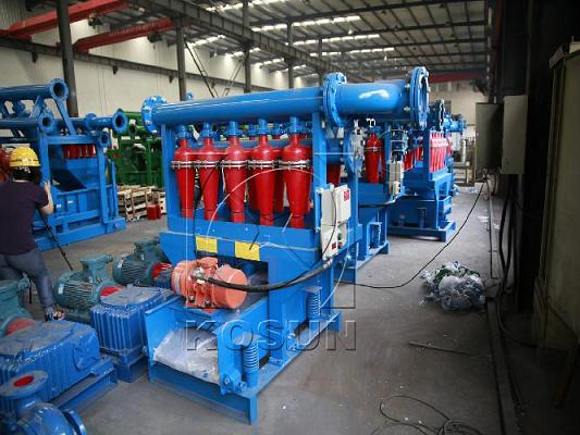 除砂器:直径为150-300mm的旋流器称为旋流除砂器。它处理钻井液的能力,在输入压力为0.2MPa时一般不低于20-120m3/h。处于正常工作状态的除砂器可清除大约95%大于74μm的钻屑和50%大于45μm的钻屑。在选择除砂器时,其许可处理量应该是钻井时最大排量的1.25倍。