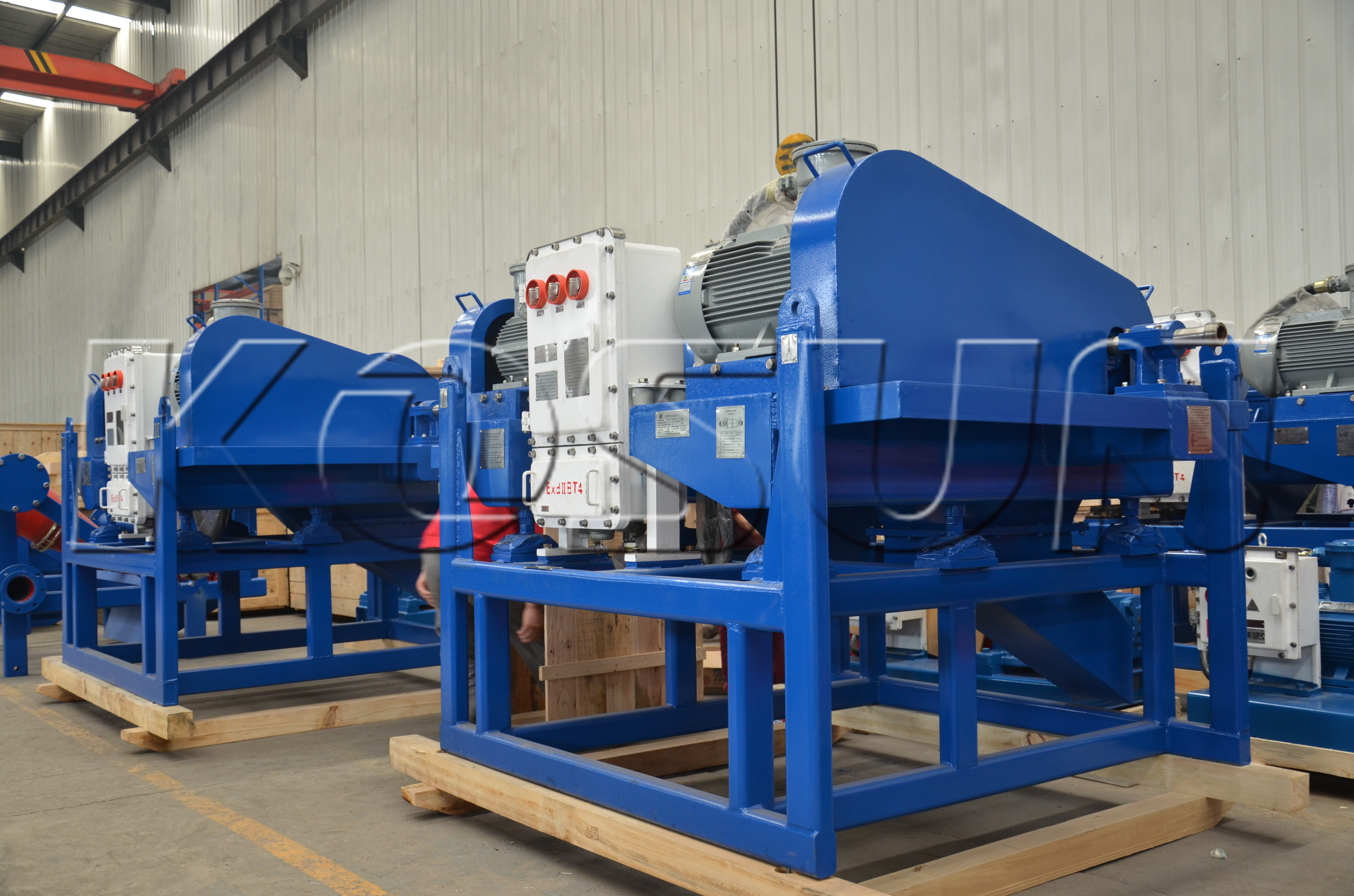 钻井液离心机是固液分离专用设备,泥浆中固相和液相的分离过程是在滚筒中完成的,用于分离钻井液中超细固相颗粒的分离。原理:钻井液离心机利用滚筒的高速旋转带动进入滚筒中的泥浆高速旋转,泥浆被甩到筒壁上形成一个液圈,液圈中的固相颗粒由于受到大于自身重力几百倍甚至几千倍的离心力的作用,钻井液离心机就克服泥浆粘度的阻力快速沉降到滚筒的内壁上,形成固相层,液体形成液相层。钻井离心机液圈中的固相颗粒所受的离心力与自身的重力的比值称为离心机的分离因素,分离因素大的离心机可以从泥浆中分离出更细的颗粒。