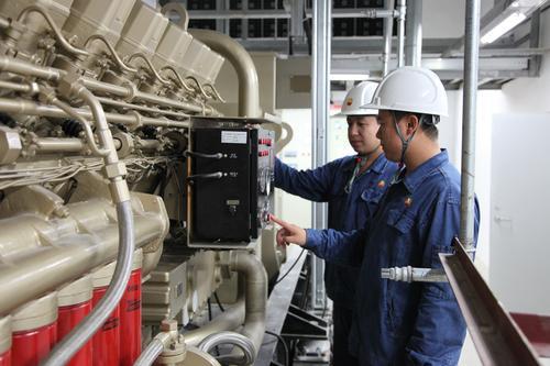 | 图为技术人员在进行柴油发电机单机试车。 |