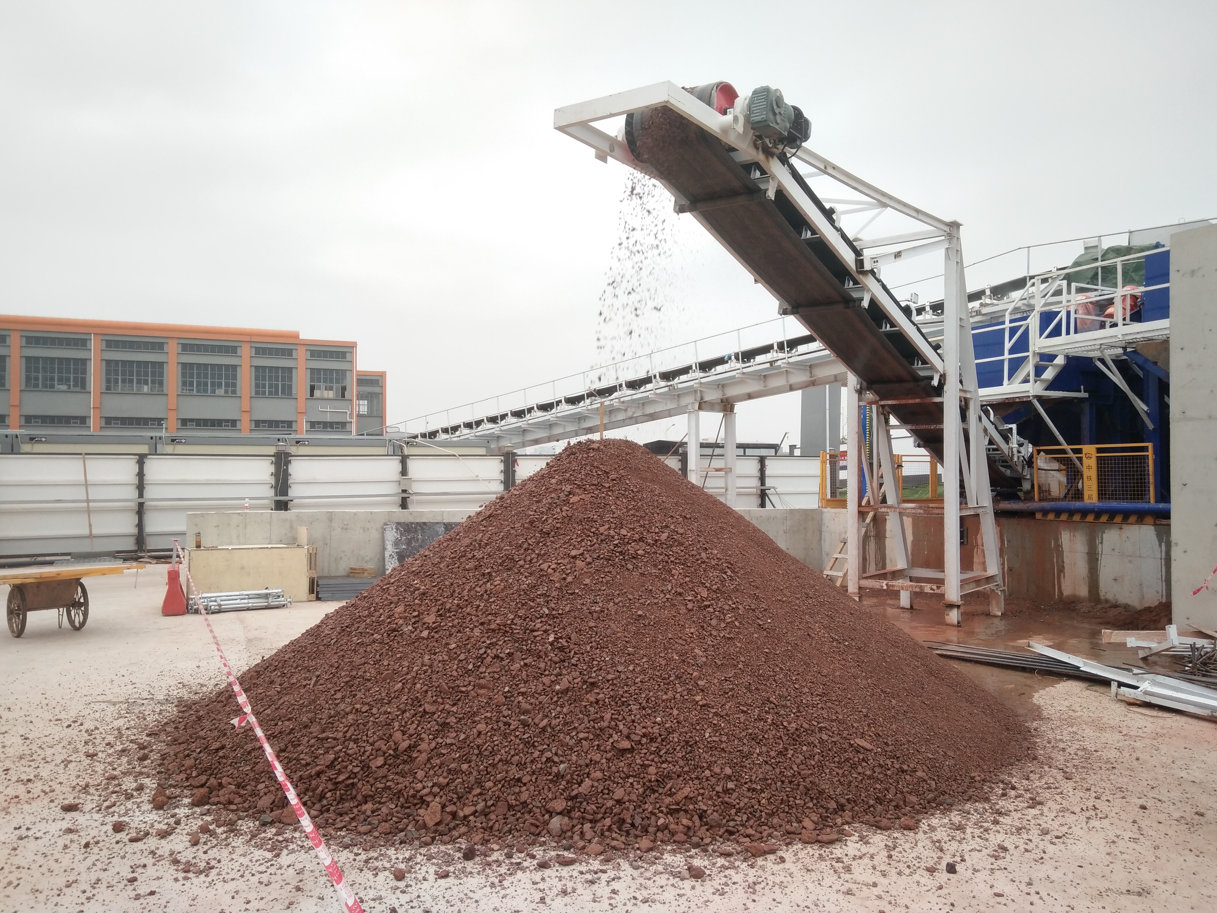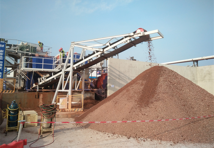 的渣土环保处理系统近期在国内某地铁项目成功投入使用并初见成效,利用皮带机系统将刚掘出的渣土,从隧道深处运输至地面渣土分离系统的进料斗,最后分离的粗砂细沙,通过拉升皮带机输送至卡车运输,将渣土分级脱水分离和干化,实现无机原料、水资源再利用实现了渣土回收再利用,还产生了很好的经济效益,为绿色施工、城市基建增添新“法宝”。